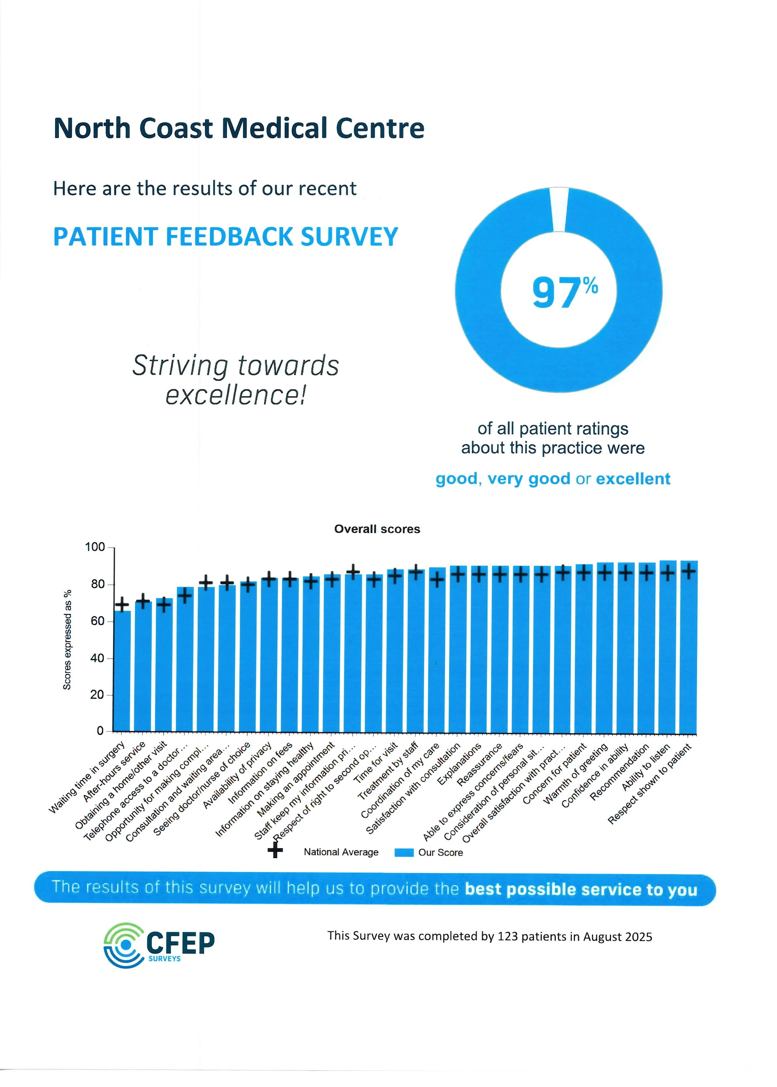 Thank you to our patients for their valued feedback. We have taken into consideration your input, and endeavour implement any positive changes.